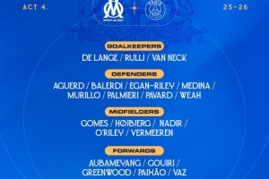 马赛对阵巴黎名单:格林伍德、奥巴梅扬、帕瓦尔、霍伊别尔在列