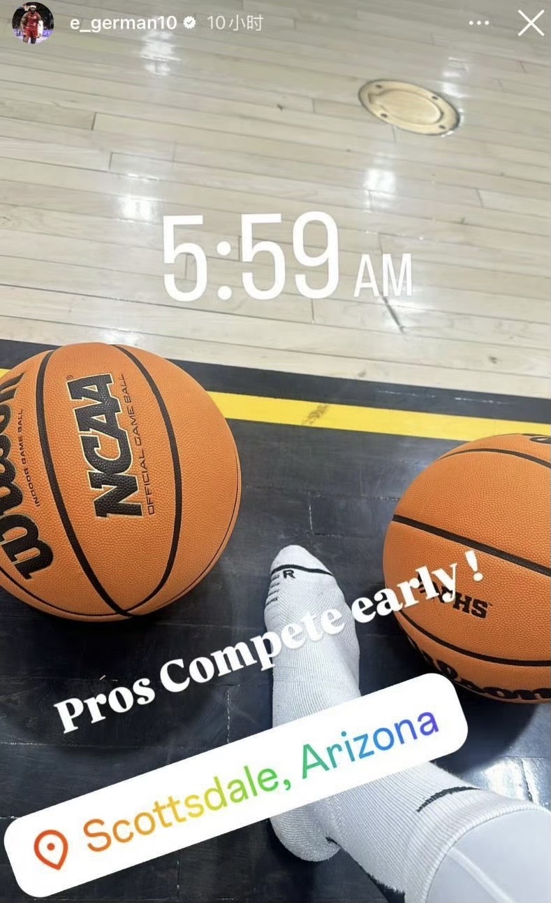 杰曼社交媒体晒休赛期训练视频,不到六点就已经开练